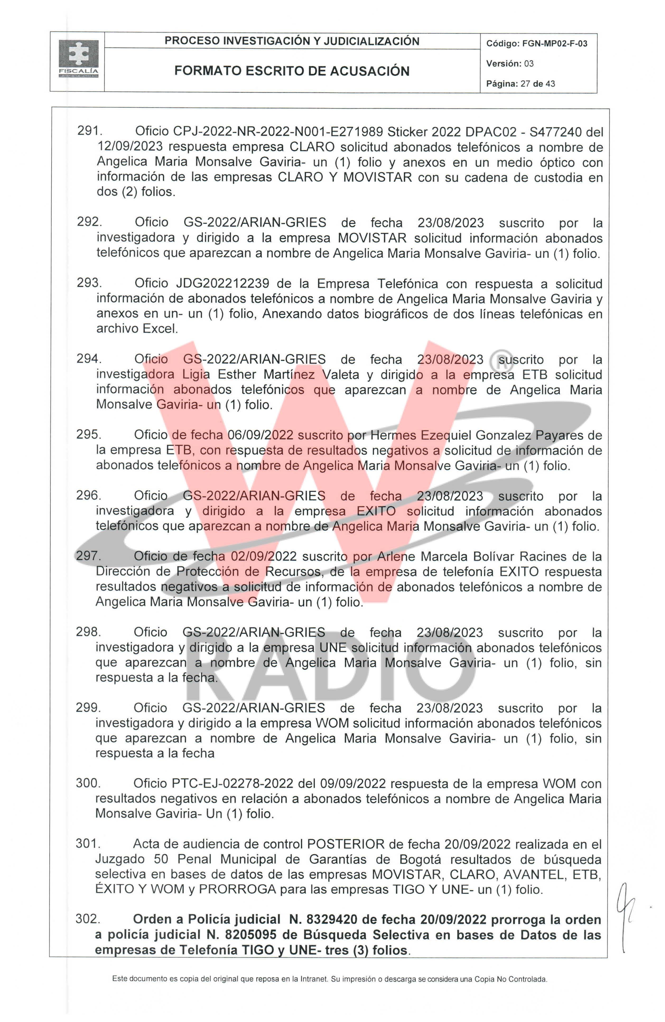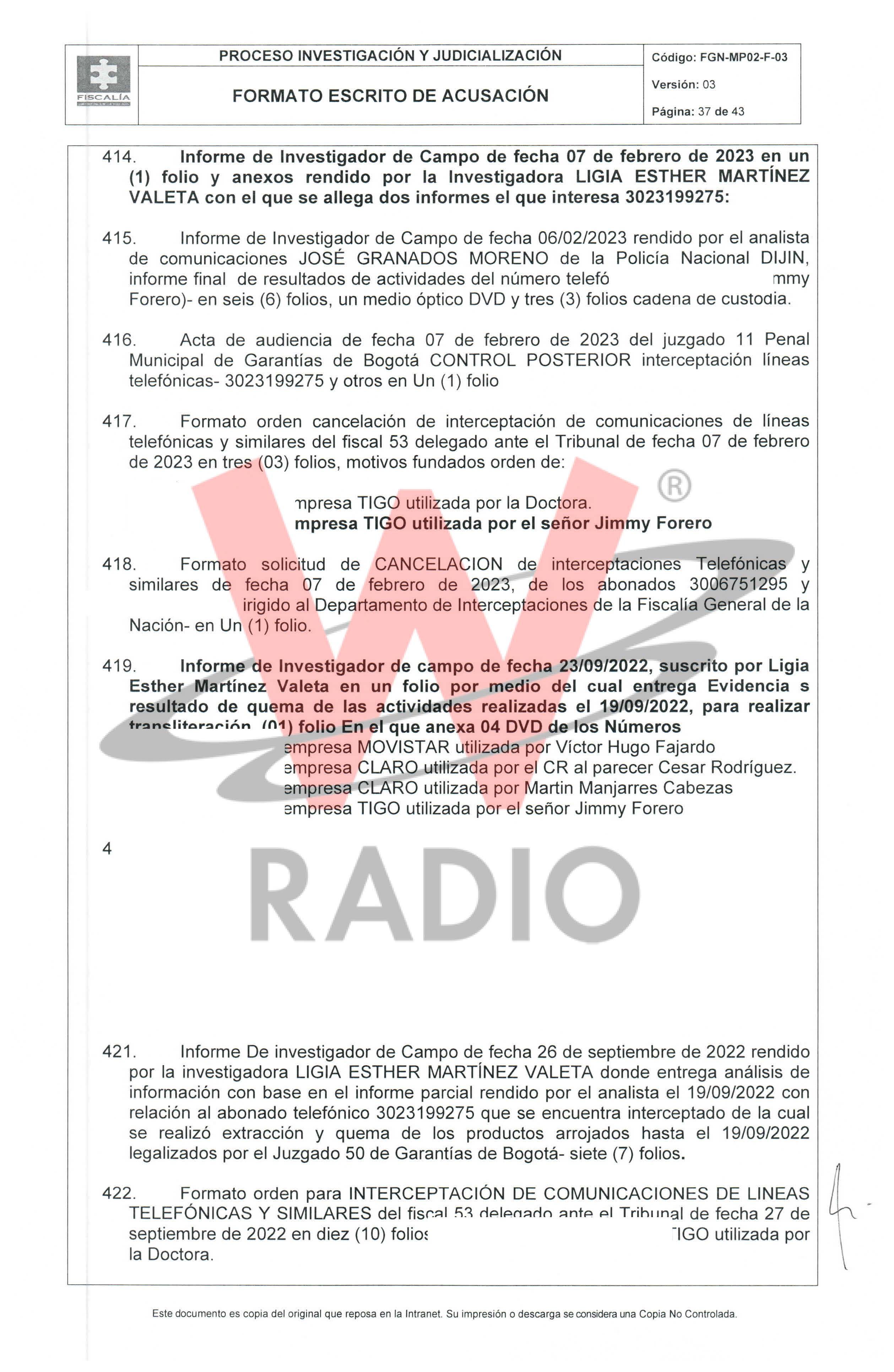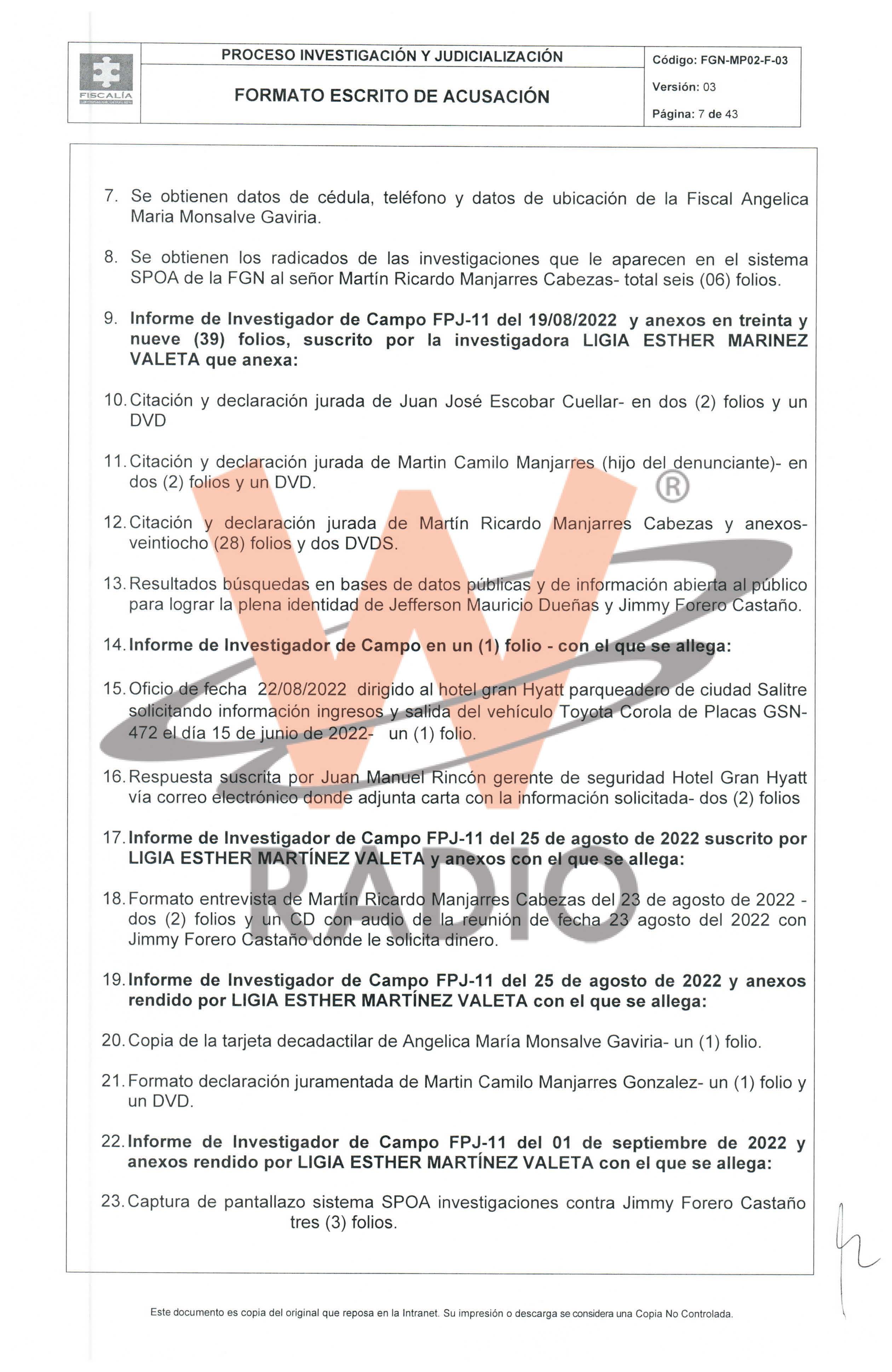 El documento-evidencia de 6 páginas está al final del artículo de WRadio y también puede descargar el PDF gratis desde el siguiente enlace: