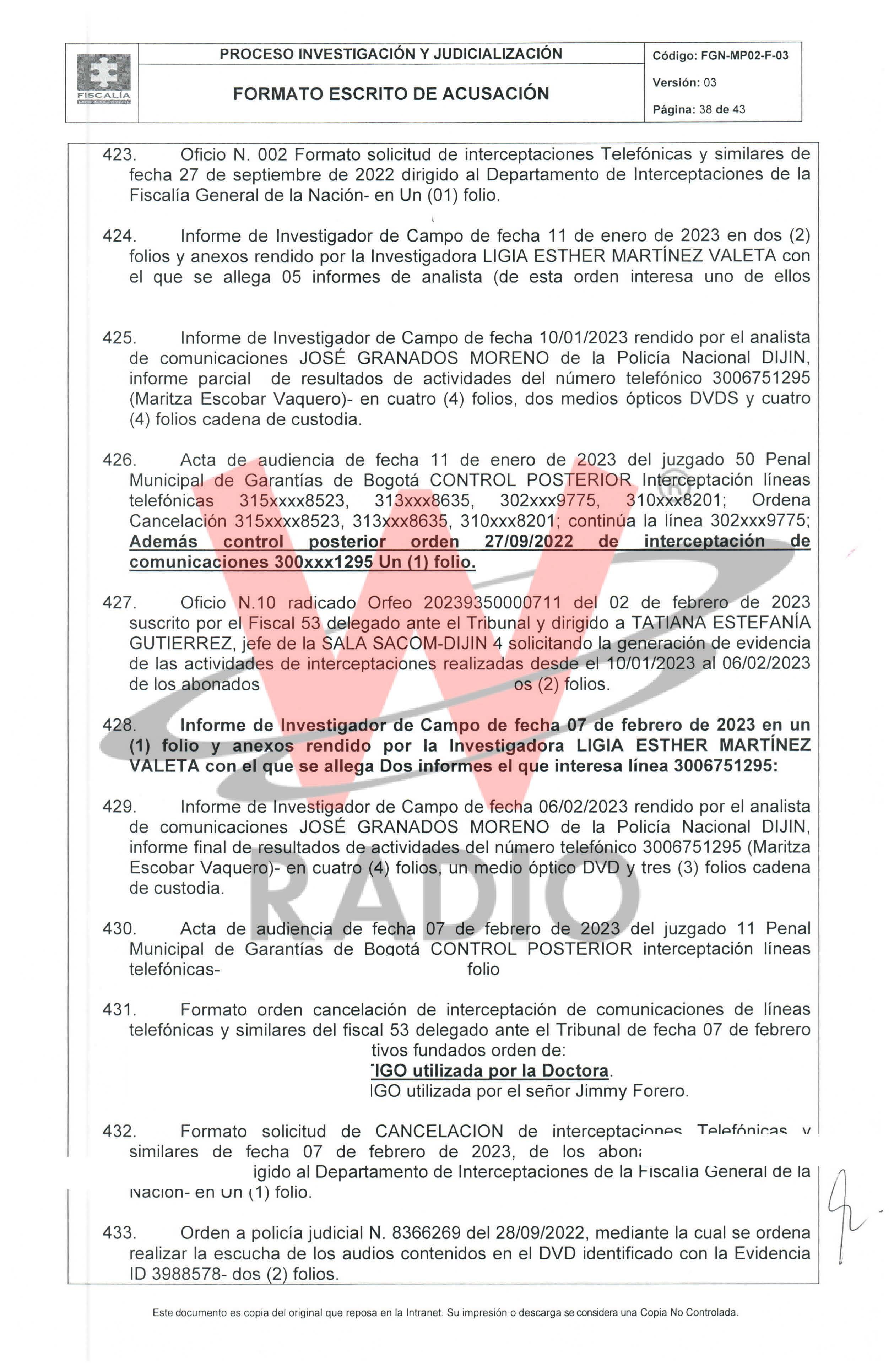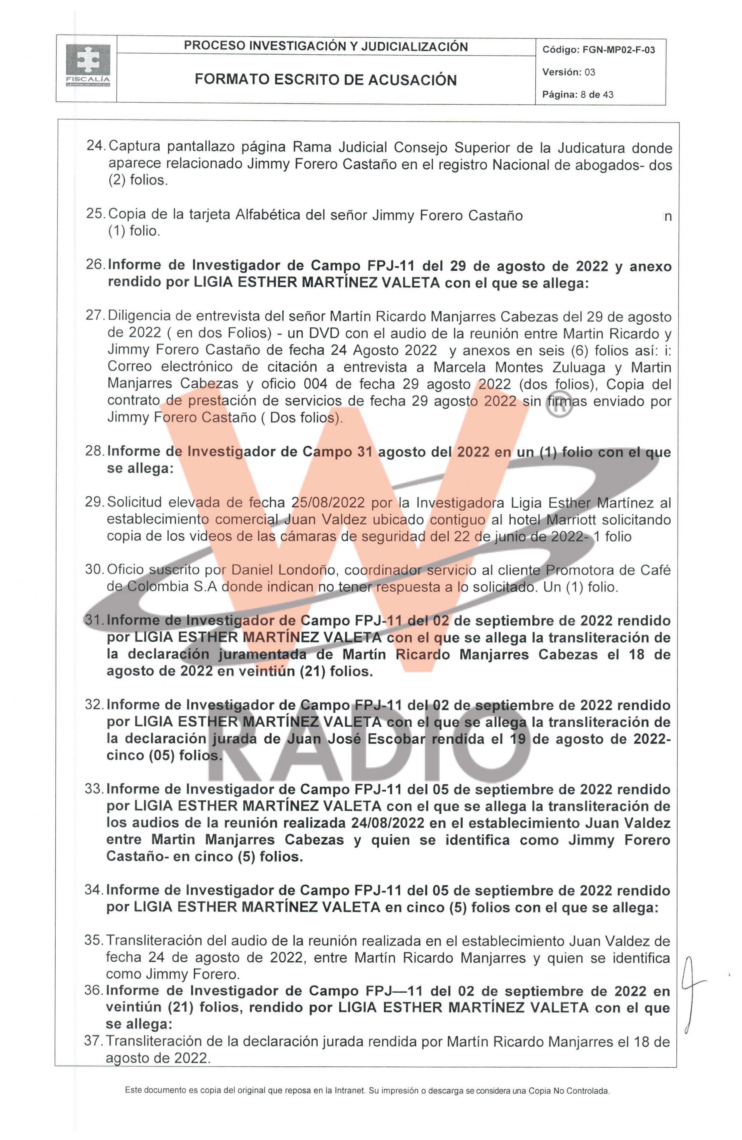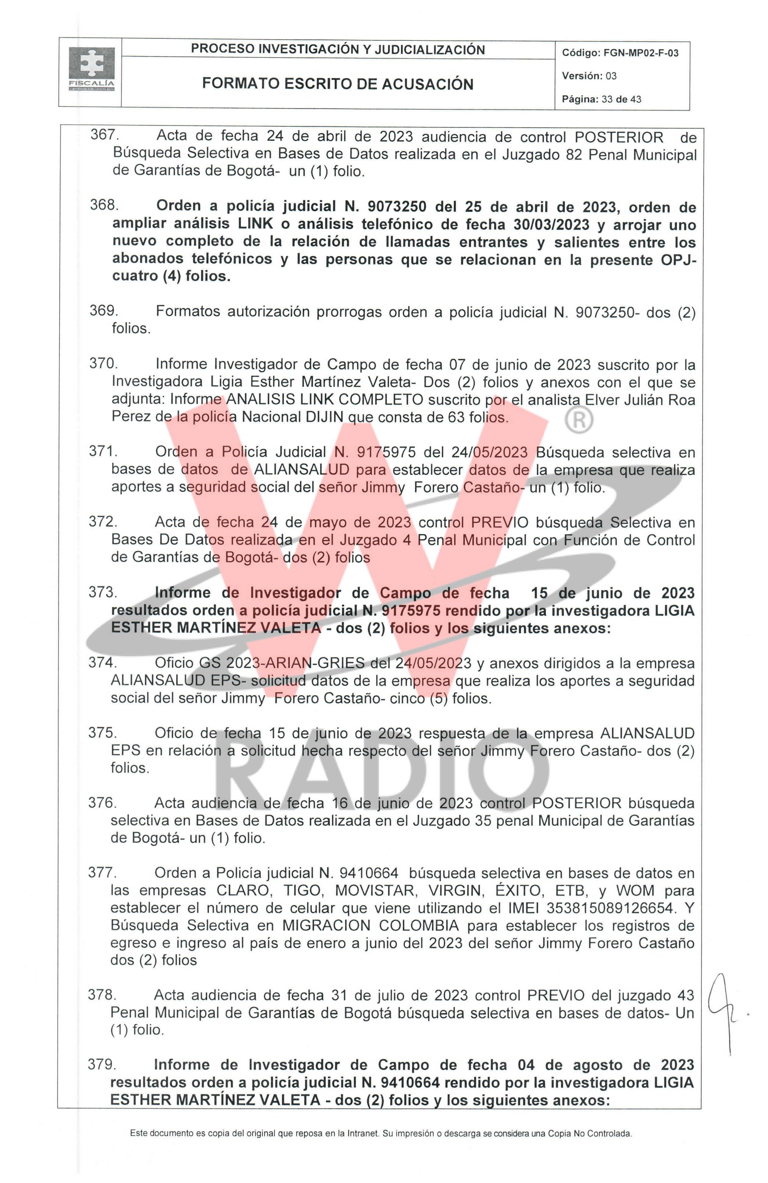 El documento-evidencia de 6 páginas está al final del artículo de WRadio y también puede descargar el PDF gratis desde el siguiente enlace: