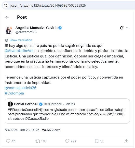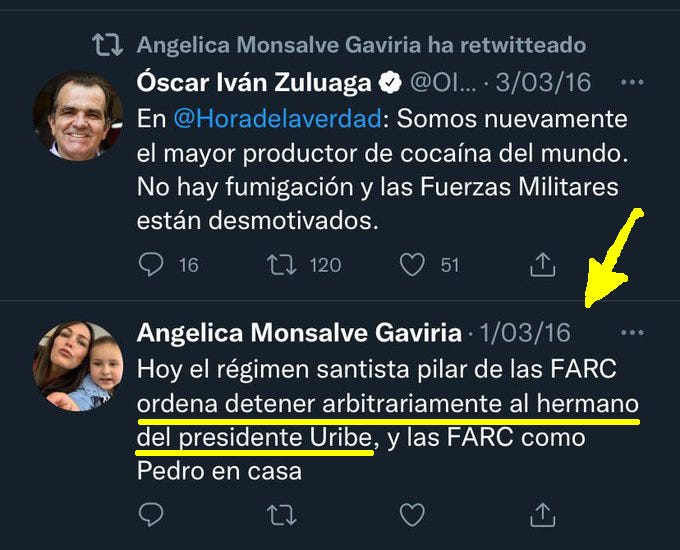 Angelica aún NO le ha explicado al país los tweets que ella borró apoyando a Uribe, su hermano Santiago y al Uribismo.