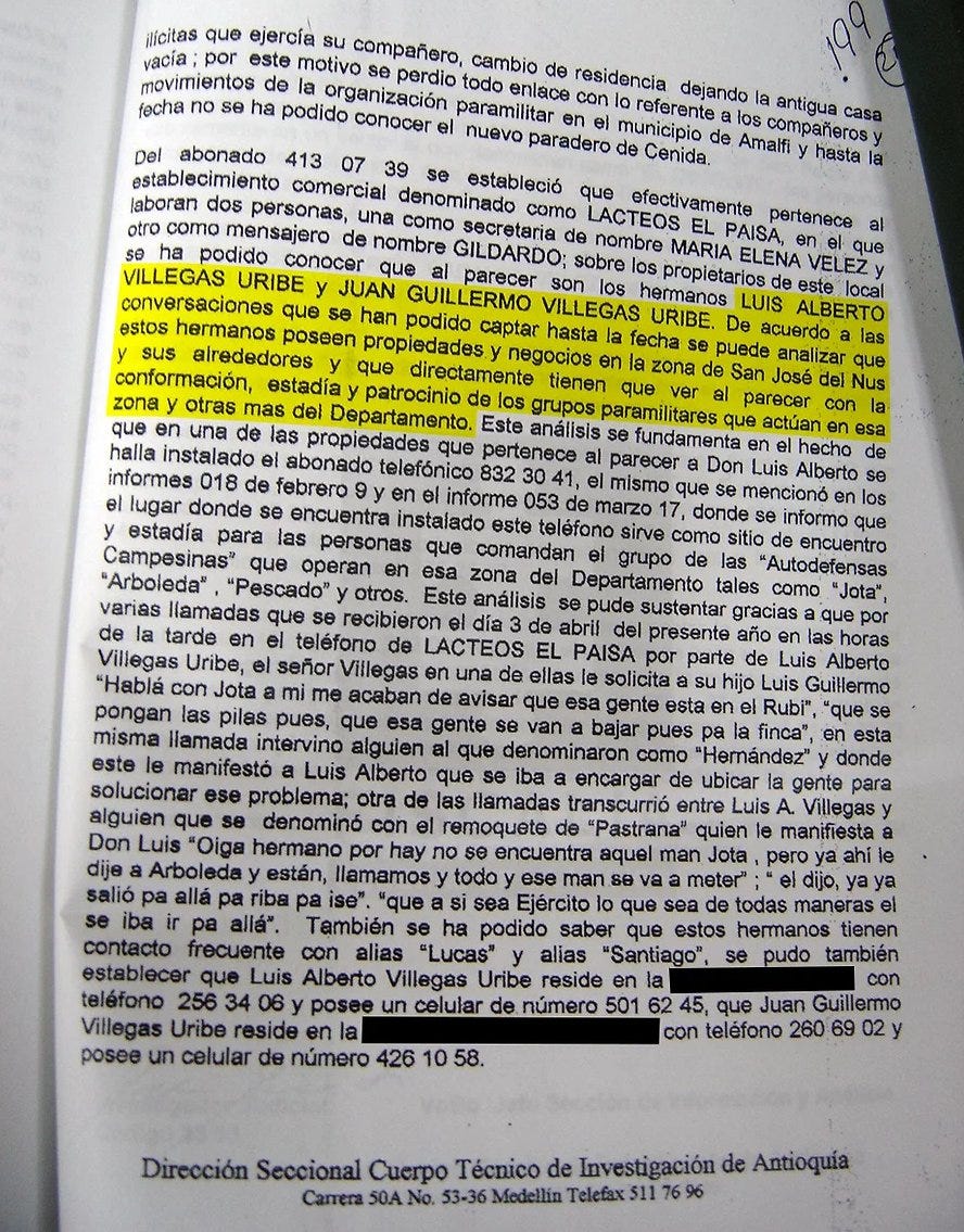 Pruebas que Juan Guillermo Monsalve dice la verdad sobre Uribe y sus nexos con el Bloque Metro. En primer lugar los hermanos Villegas Uribe aparecen como fundadores de grupos paramilitares en un informe del CTI del 28 de abril 1998.