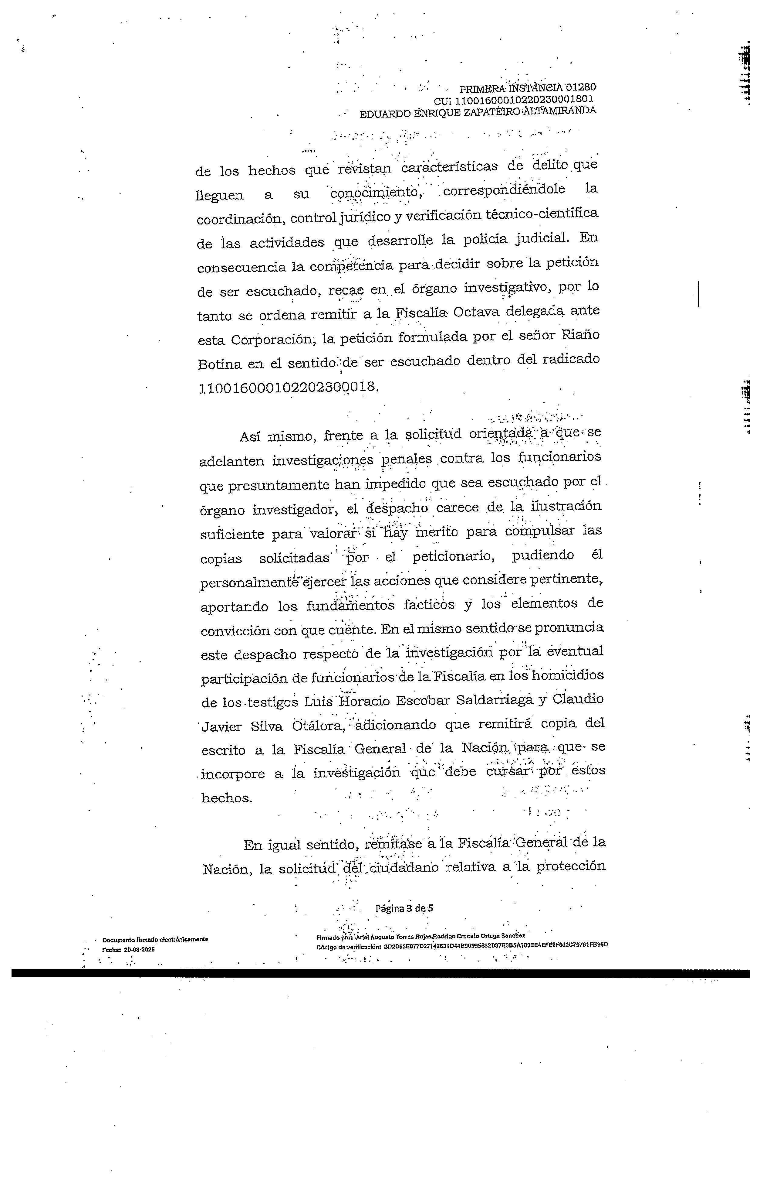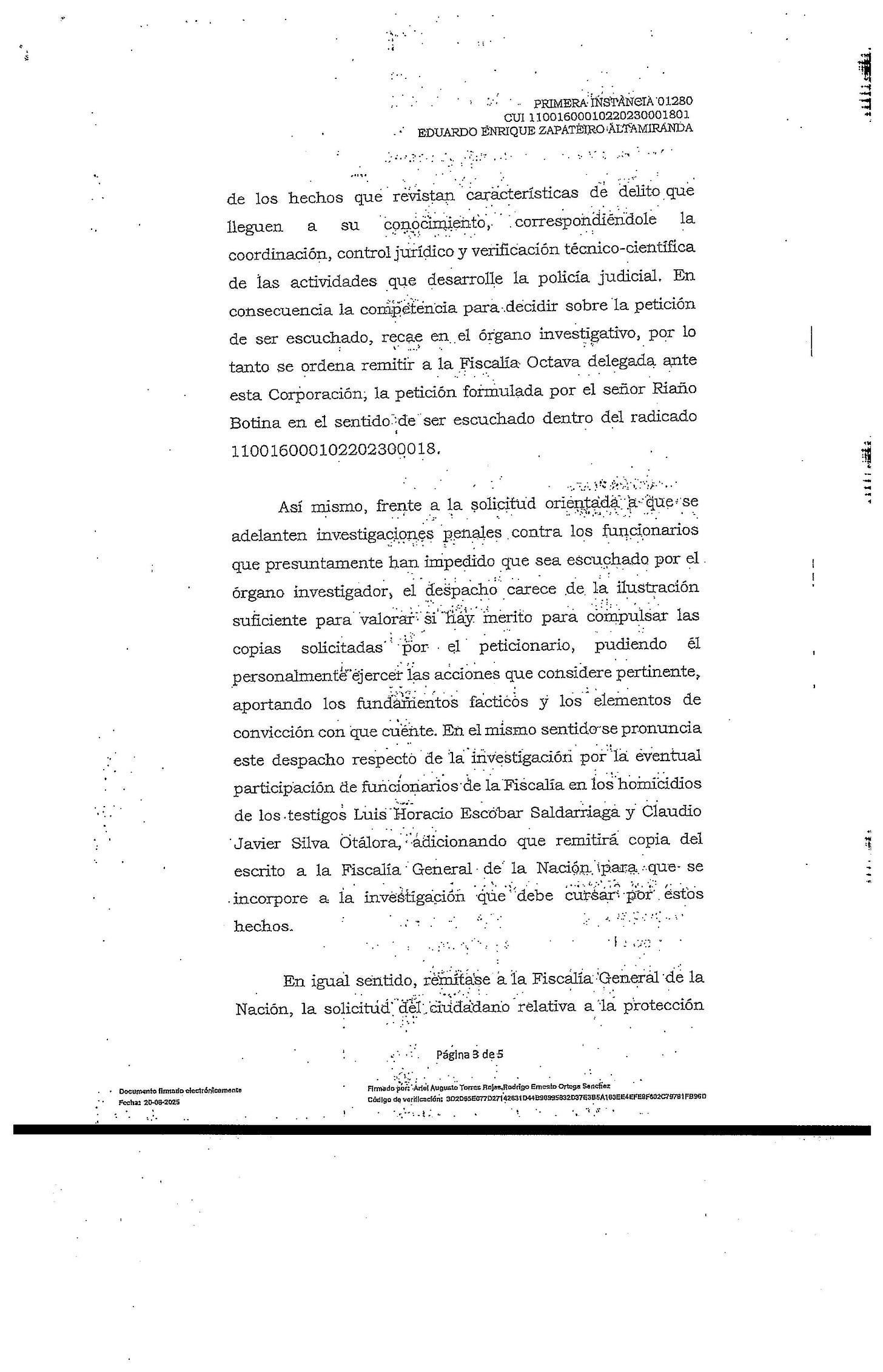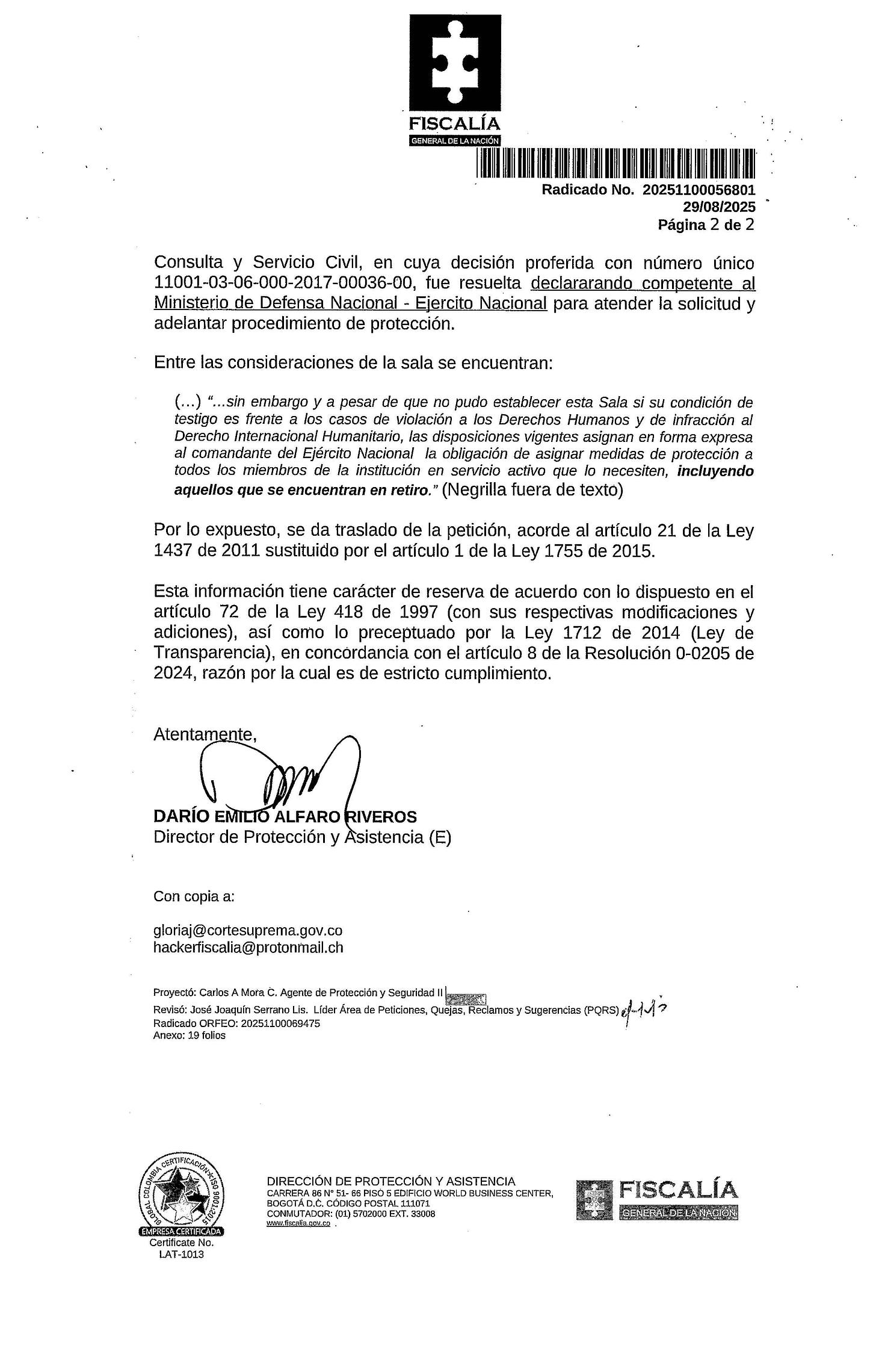 ZAPATEIRO TIENE ESQUEMA DE SEGURIDAD DEL MINISTERIO NACIONAL - EJERCITO Y NO NECESITA ESQUEMA DE LA FISCALIA.