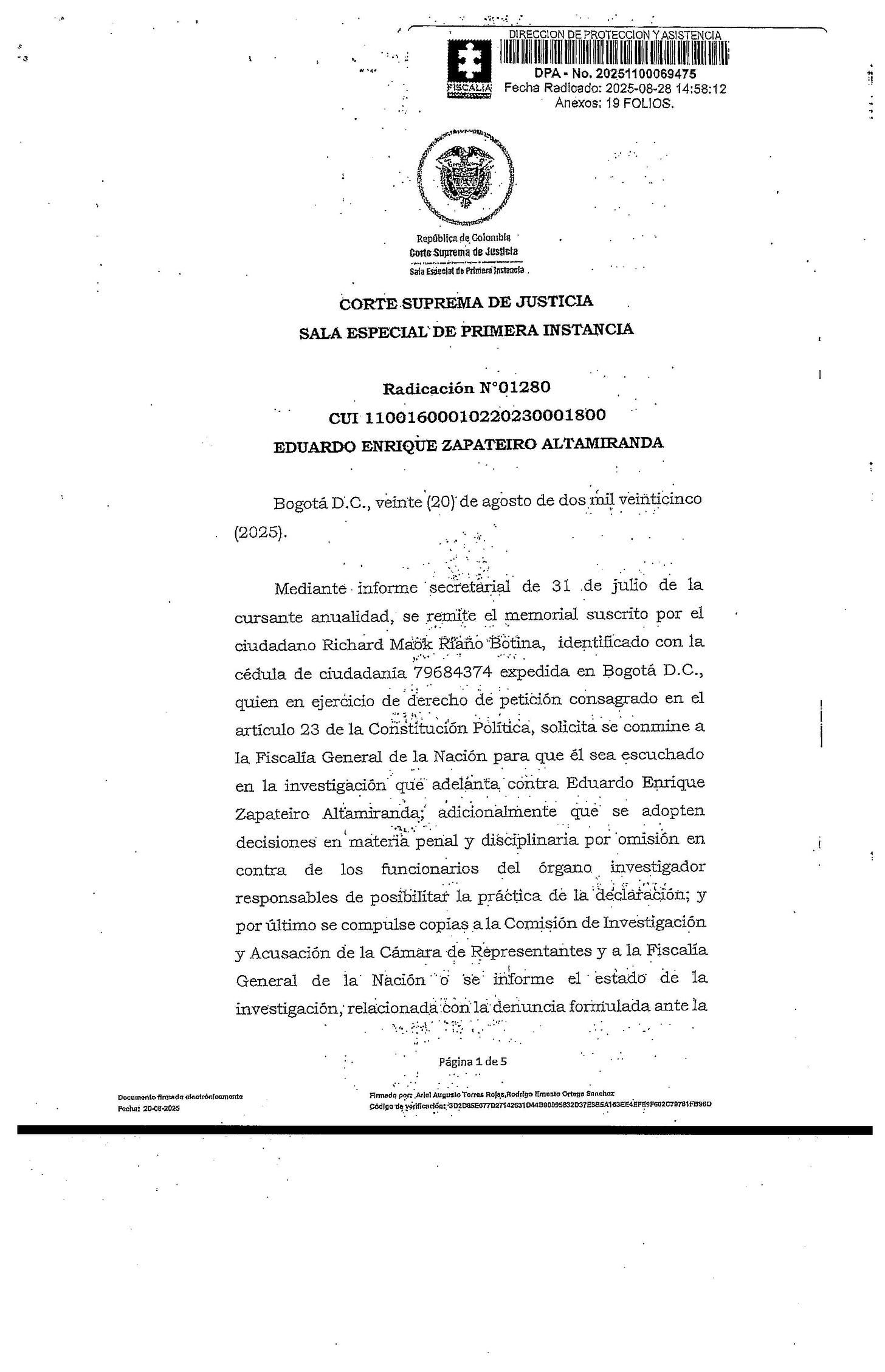 Estos son los oficios que recibí de la Fiscalía y Corte Suprema de Justicia al respecto: