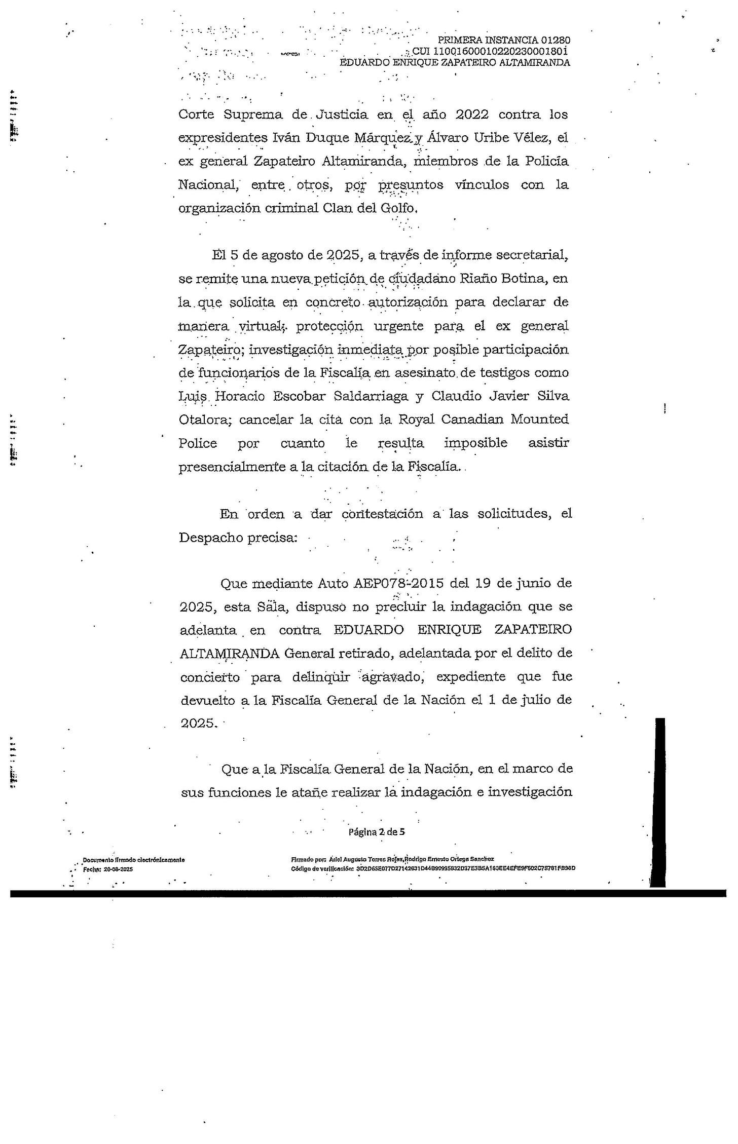 También fue publicado en Revista Cambio: https://cambiocolombia.com/justicia/corte-suprema-rechaza-preclusion-caso-contra-general-r-eduardo-zapateiro-vinculos-clan-del-golfo).