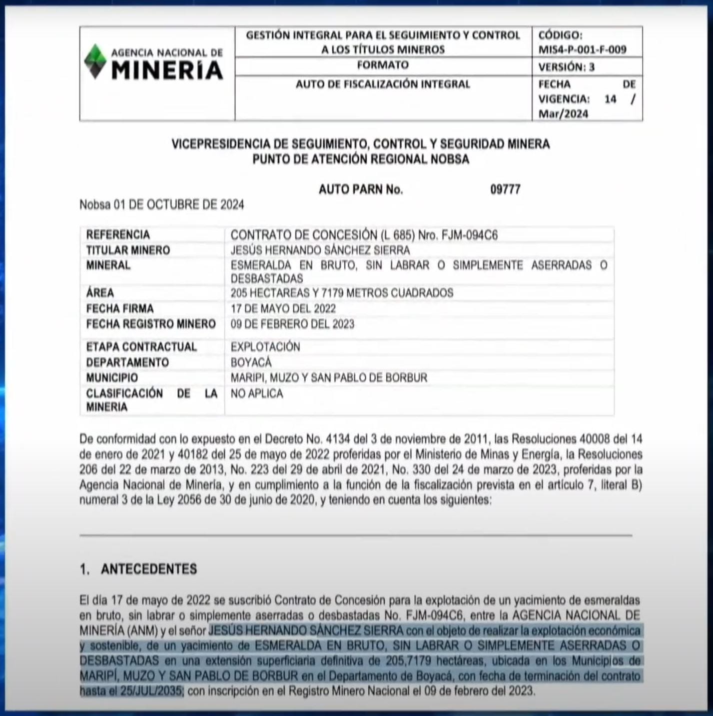 Aquí están las imagenes que el Tercer Canal presentó, a las cuales, según nuestras investigaciones, le agregaria el nombre de la empresa de esmeraldas, llamada Fura Gems Inc. de Dubai, con la cual está asociada Jesús Hernando Sánchez y Julio Lozano Pirateque.